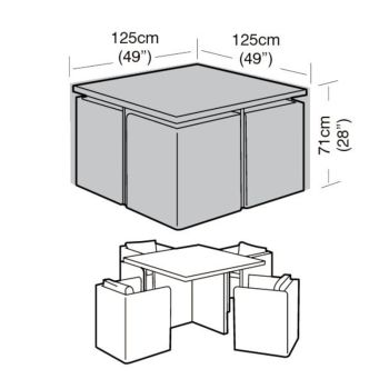 Designed to cover and protect the table and chairs of a traditional 4 seater medium cube set. The Premium Super Tough 4 Seater Medium Cube Set Cover in Black is made from high quality super tough cross laminated material. This cover is also suitable for a Small Square Table.