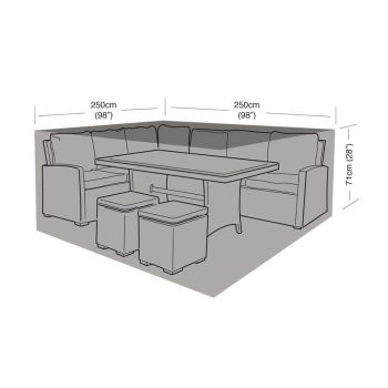 The Premium Super Tough garden furniture cover range features our unique zero fade technology, full UV protection against the sun for longer life and a wipe clean surface. The cover offers full weather protection with waterproof welded seams, while also protecting your sofa dining set from bird droppings, tree sap & pollution. All round draw string bottom with cord locks are included for added security.