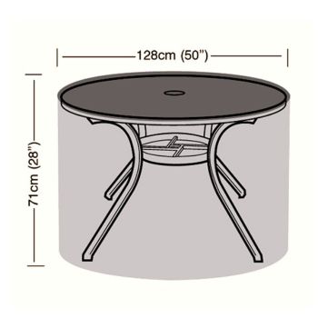 The Deluxe 4/6 Seater Circular Table Cover offers you full protection for your garden furniture. The cover is made from strong, durable water-resistant PVC backed polyester. The material has been U.V tested for further protection and features an easy wipe surface, protecting you from all-weather types, dirt or bird droppings. It features rust-resistant brass eyelets and heavy duty security ties for secure fitting.