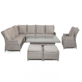MZ Cotswold Reclining 6-8 Seater Rattan Corner Dining Set with Rising Table