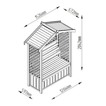 The arbour is manufactured from Pressure Treated timber to give it a 15 year guarantee against rot and fungal decay and has been smooth-planed for a splinter free finish. The solid timber roof offers shelter from unexpected rain showers and the sun.