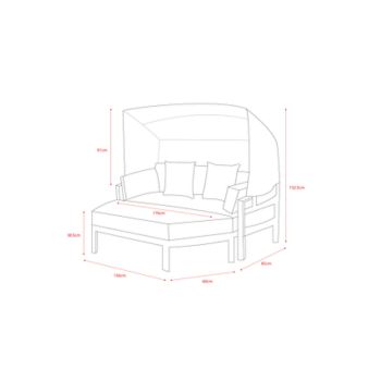 The Pheasant Aluminium Day Bed and Lounger is a 2 piece set with a built-in adjustable hood cover for protection from the sun and wind. The deep seated cushions provide extreme comfort, and the Ottoman can be freely moved to act as a table or additional seating. All together a fantastic way to relax outdoors with more space than a chair or traditional lounger can provide.