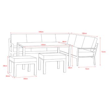 The Pheasant 6-8 Seater Aluminium Square Corner Lounge Set is great for large dining events with its comfortable sofa and footstools. The sofa and table are both rectangular in shape allowing enough space for everyone without any awkward angles. The footstools can be moved to suit your preferences or used as small side tables.