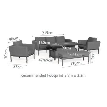 MZ Pulse 5 Seater Outdoor Fabric Sofa Set with Rising Table - Grey comes as a luxury casual dining experience. The combination of seating combined with the all-weather outdoor fabric construction will ensure low maintenance and can accommodate all the family.