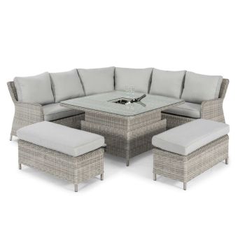 MZ Oxford 4-8 Seater Royal Rattan Corner Dining Set incorporates new improvements with tried and tested popular features of some of our best-selling sets. With generous benches to allow for extra seats, the convenient corner seating space optimises space in your garden. Finished off with the rising table, this set will perfectly complement any garden. The rising table will allow you to go from dining to lounging as it transforms from a dining table to a coffee table with ease.